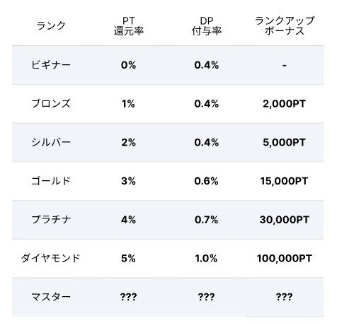 DOPA攻略において最も重要なエンティティは「ランク」です。ランクと実質還元率は明確な正の相関関係にあります。 ランクが上がるほど、チャージ時のポイントバックや限定ギフトが増え、これが実質的な「ハウスエッジ(運営の取り分)」を相殺する強力なバフとなります。
