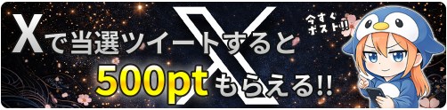 Xで当選ツイートすると500ptプレゼント |