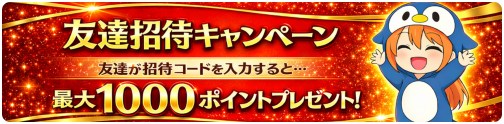 - 友達招待:最大1000pt