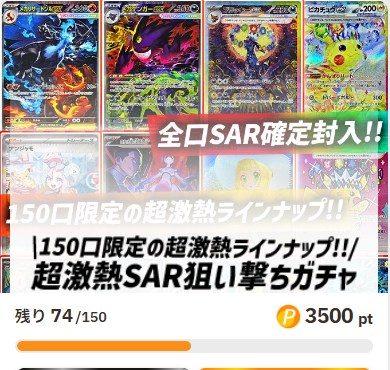 今回引いてみたのは1回3500ptで「SAR」確定ガチャ。